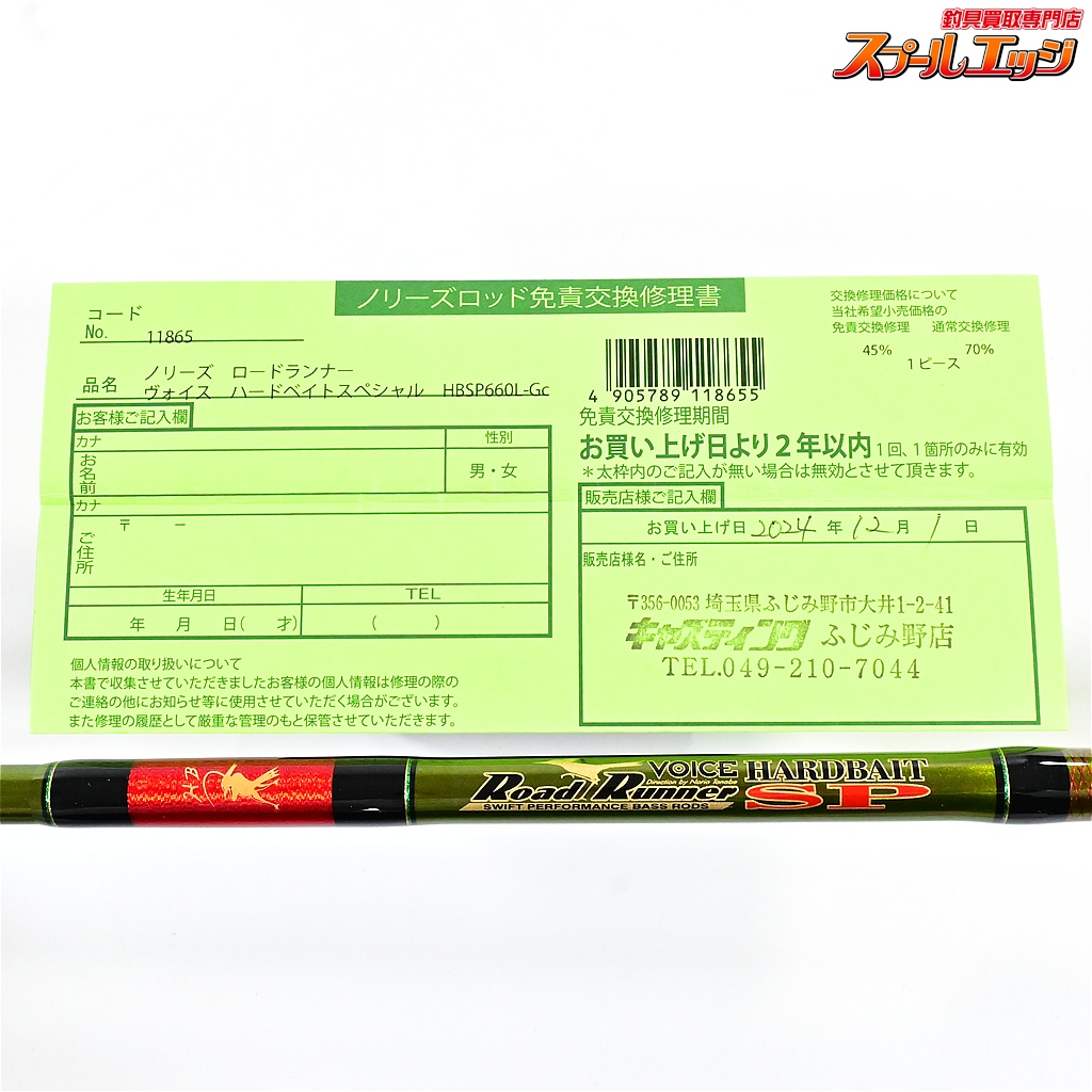 ・免責交換修理書があります。店印あり、期限は2026年11月30日までとなっております。購入時のレシートは付属いたしません。
