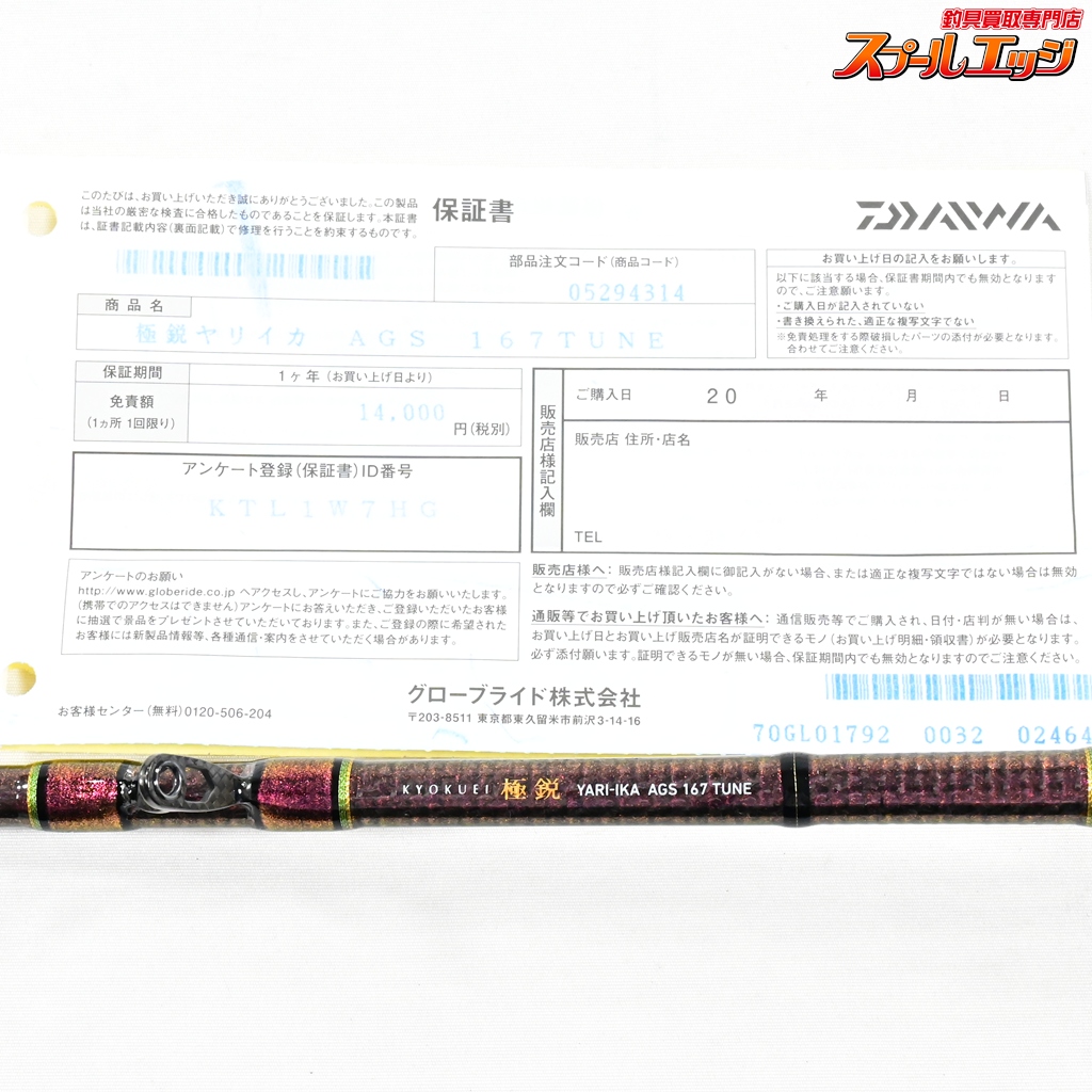 3.  > 【ダイワ】 極鋭 ヤリイカ AGS 167 チューン DAIWA KYOKUEI YARI-IKA TUNE ヤリイカ やりいか K_134