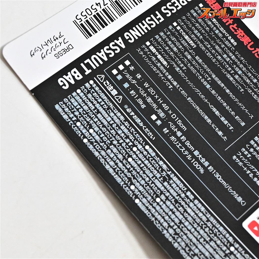 【ドレス】 フィッシングアサルトバッグ ワンショルダーボディバッグ リュック パックパック 釣り 大容量 多機能 アウトドア カメラバッグ 収納 縦型 DRESS  K_100