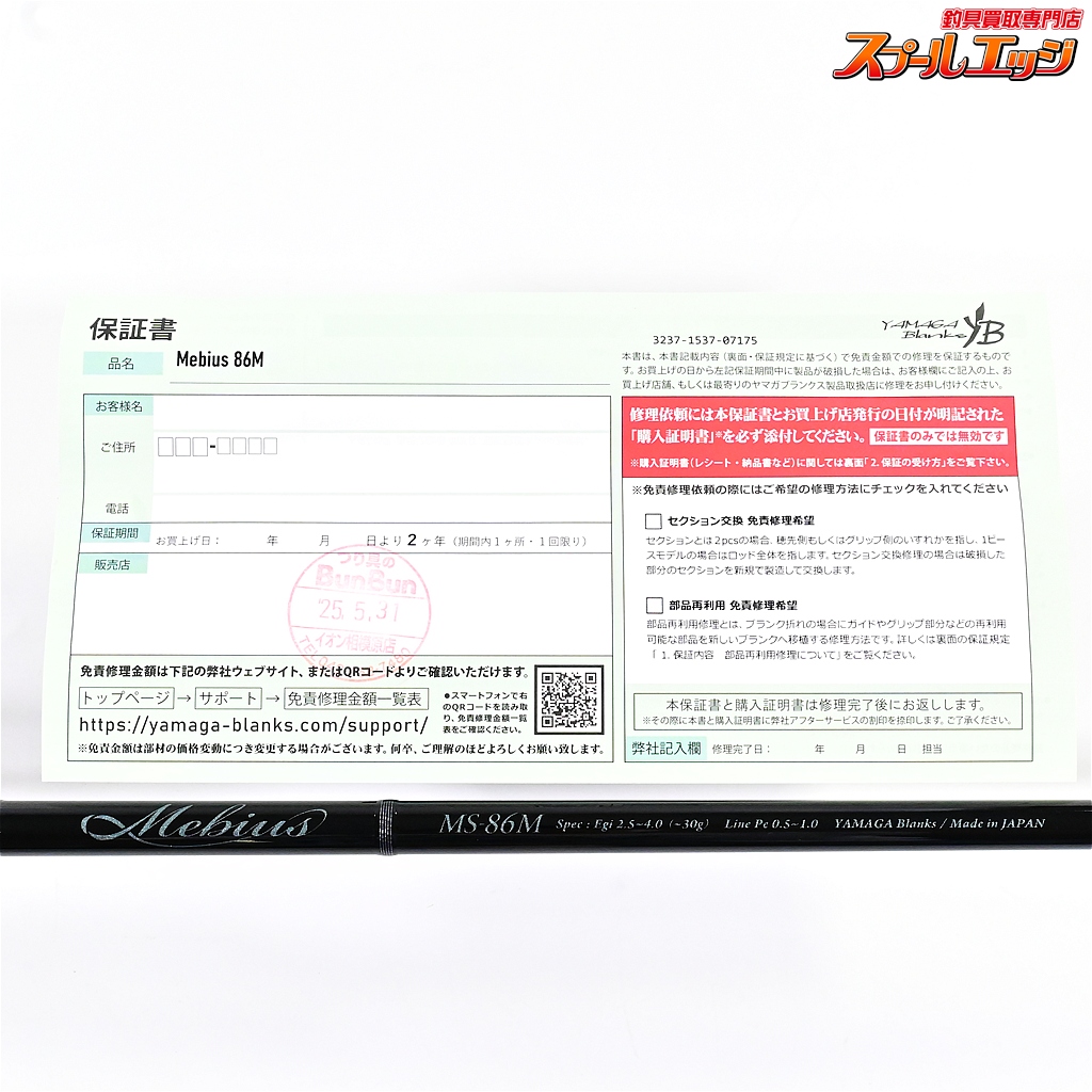 ・保証書があります。店印あり、期限は2027年5月30日までとなっております。購入時のレシートは付属いたしません。