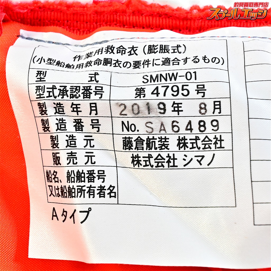 3.  > 【シマノ】 ラフトエアジャケット VF-052K タイプA レッド フリー 自動膨張式 2019年8月製造 桜マーク有 SHIMANO K_060
